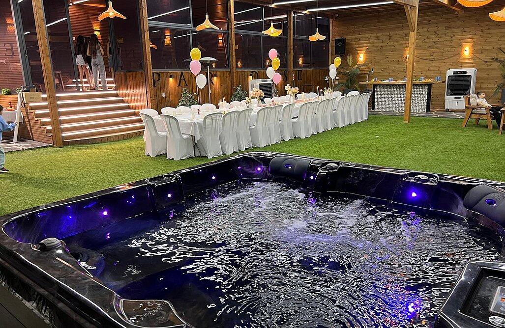 בריכת שחייה מטריפה מחוממת ומקורה, ג'קוזי ספא במתחם החיצוני המקורה, מדשאות ענקיות עם פינות רביצה ואפילו מטבח מאובזר, טאבון וגריל מקצועי. מתאים עד 100 אורחים.