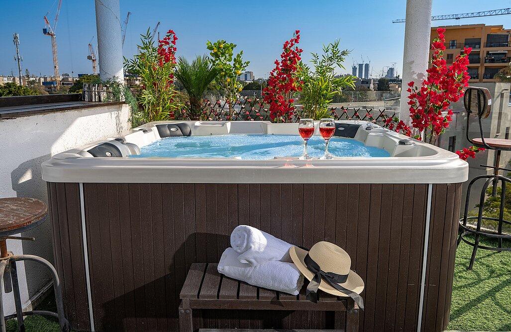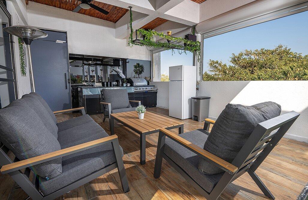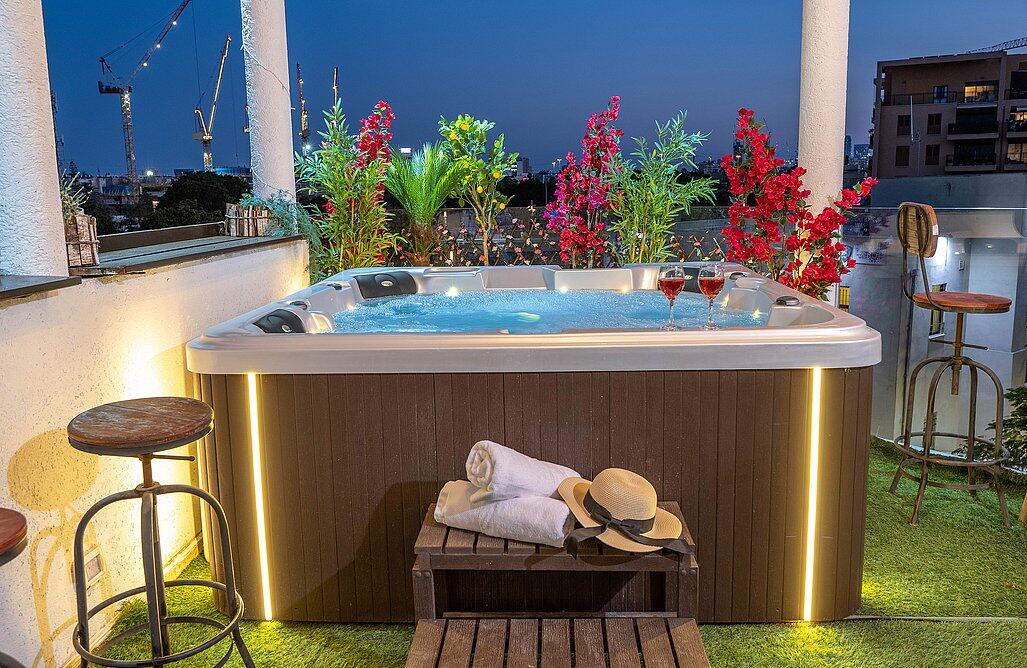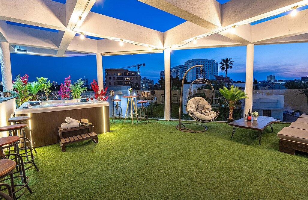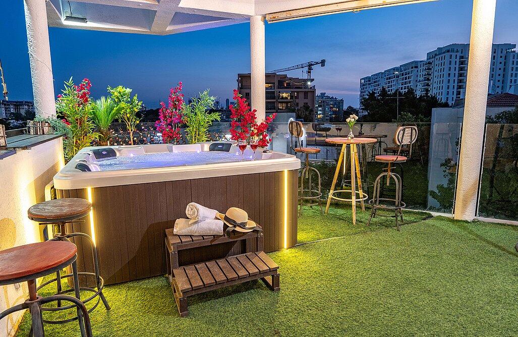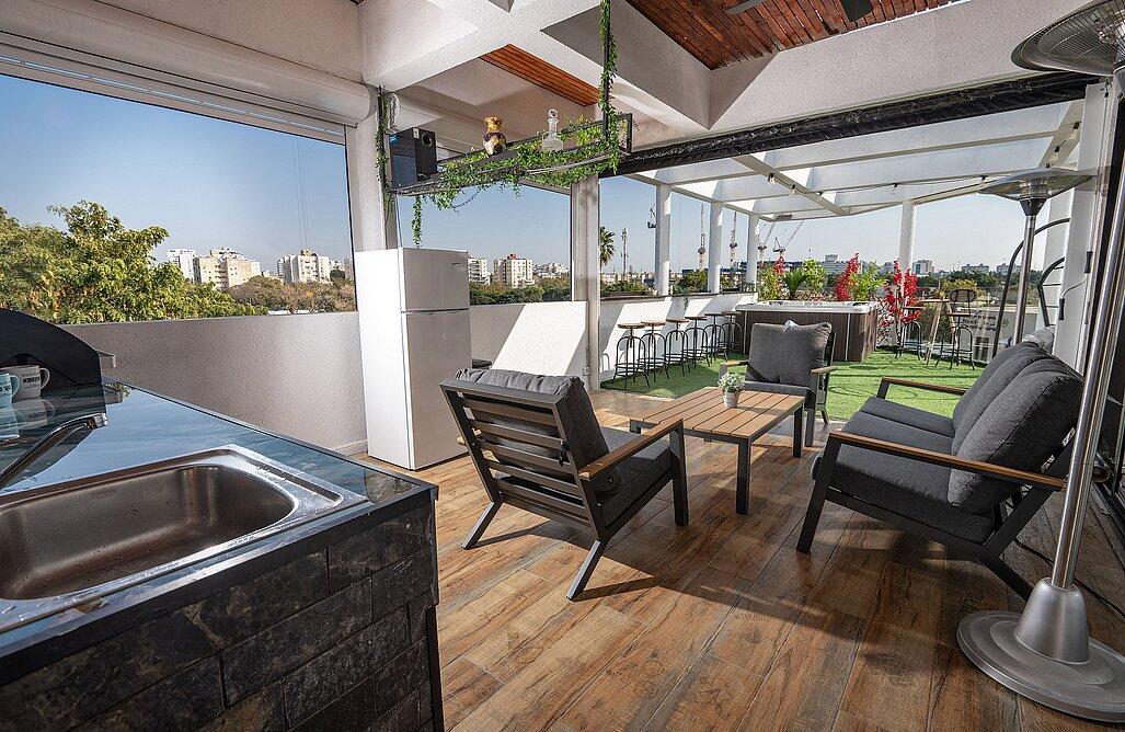 תל אביב ריזורט מציע לכם מתחם יוקרתי הכולל 2 דירות נופש כאשר באחד מהם קיים מרפסת עם פינת ישיבה ומנגל, ובדירה השנייה תהנו מבריכה, פינות ישיבה, עמדת מנגל חיצונית עם מטבחון מאובזר, בר אלכוהול ועוד.