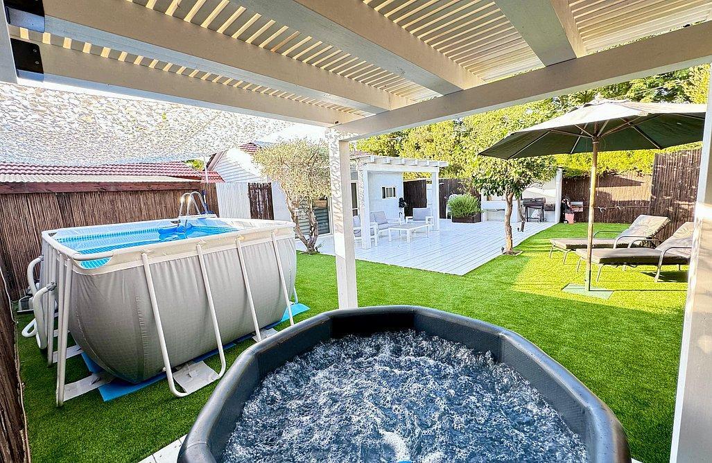 במתחם תוכלו להנות מבריכת שחיה צלולה, ומג'קוזי מפנק ביותר, פינות שיזוף ושימשיות, מטבחון חיצוני,מדשאות ופינות ישיבה מרוווחות, פינת ברביקיו, ועוד מס פינוקים שתוכלו להנות מהם!