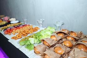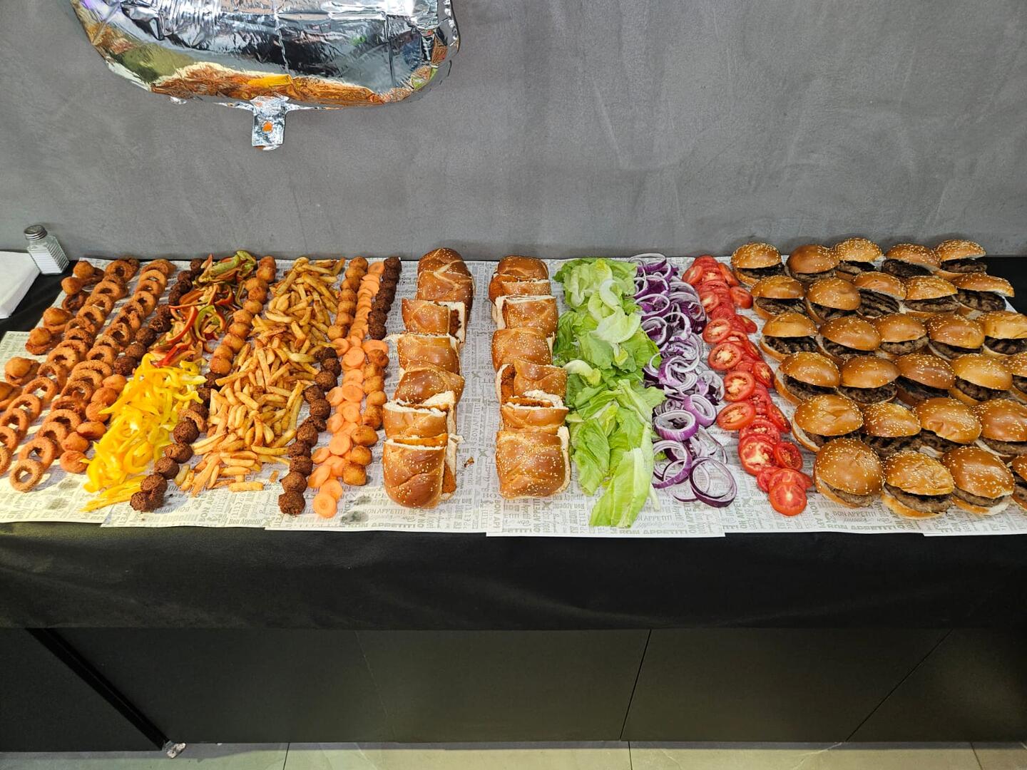 - שולחן מקדונלדס- המבורגר בלחמניה/נקניקיות בלחמניה,צ'יפס,ירקות המבורגר,רטבים.