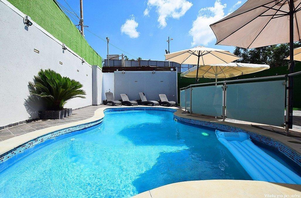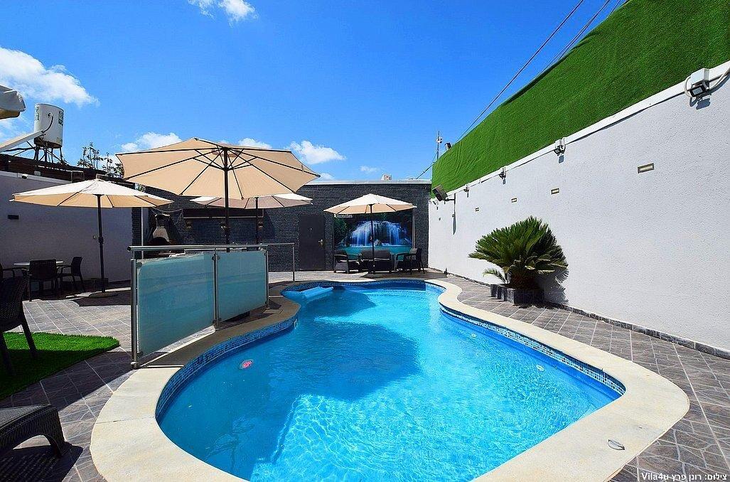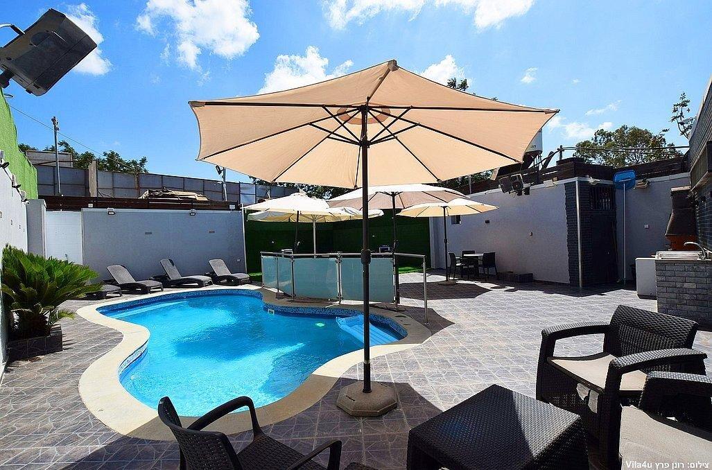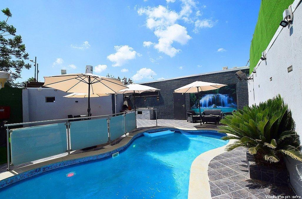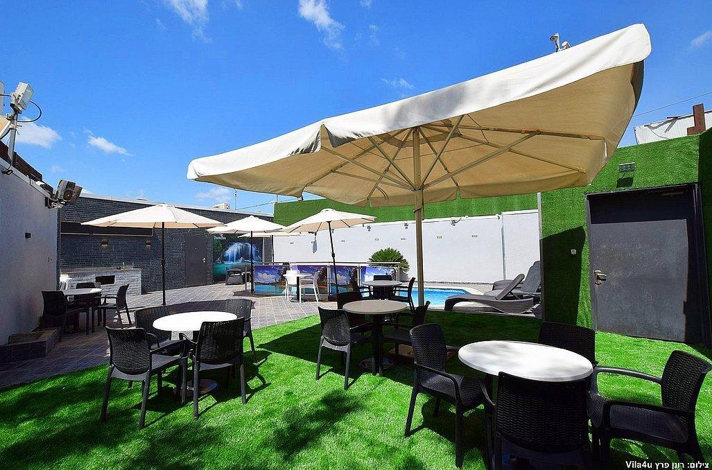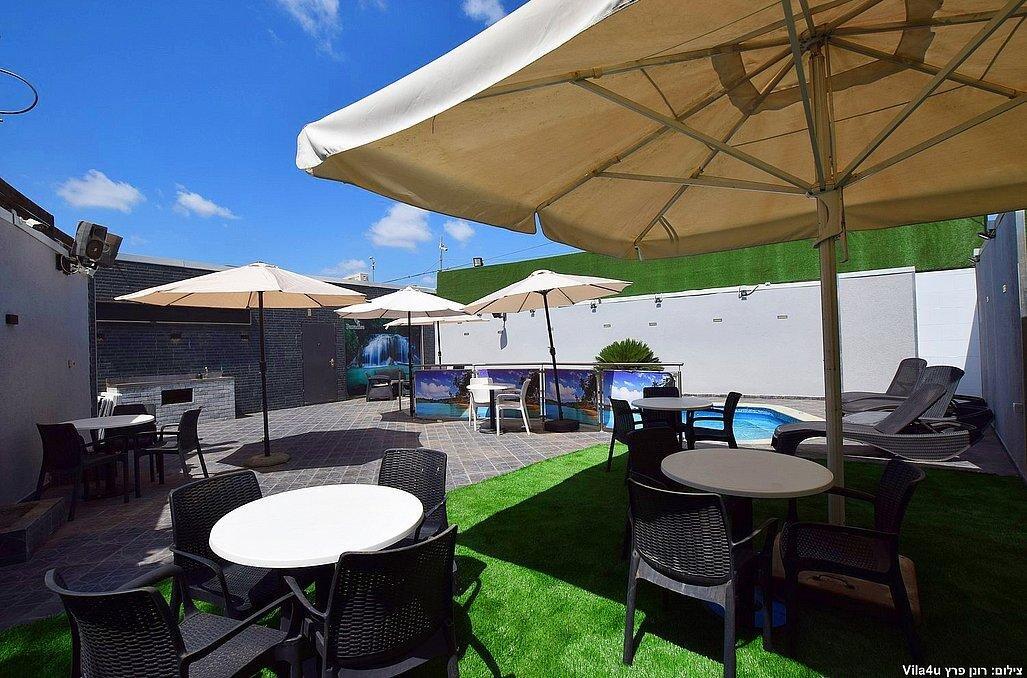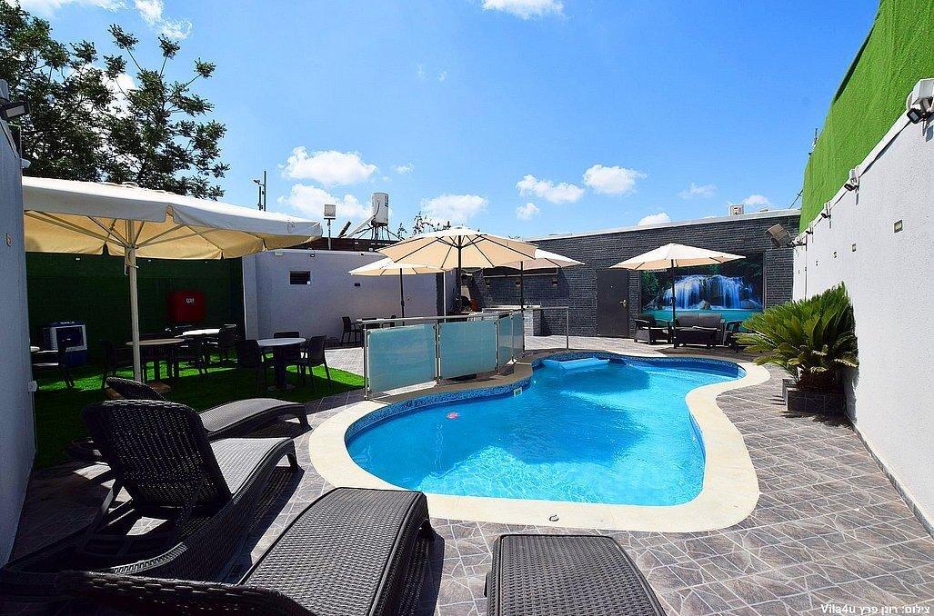 מתחם חיצוני עם בריכה, מנגל ופינות ישיבה