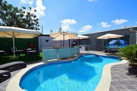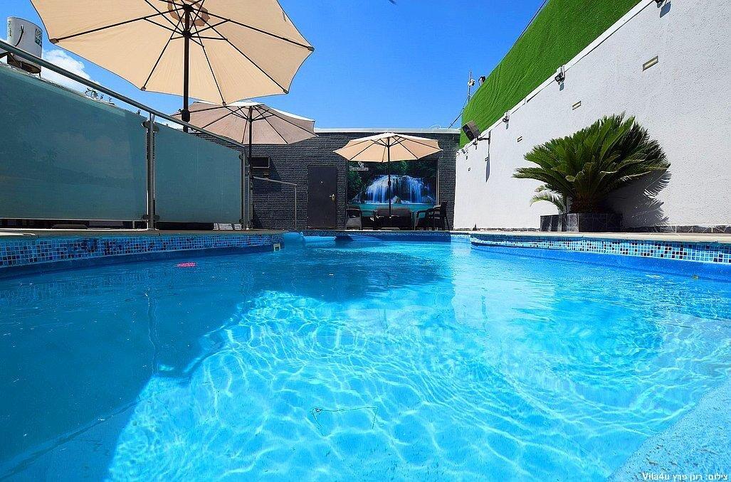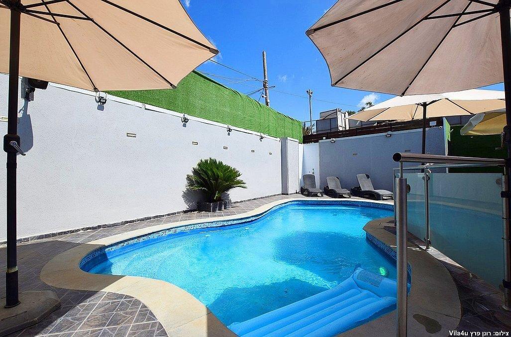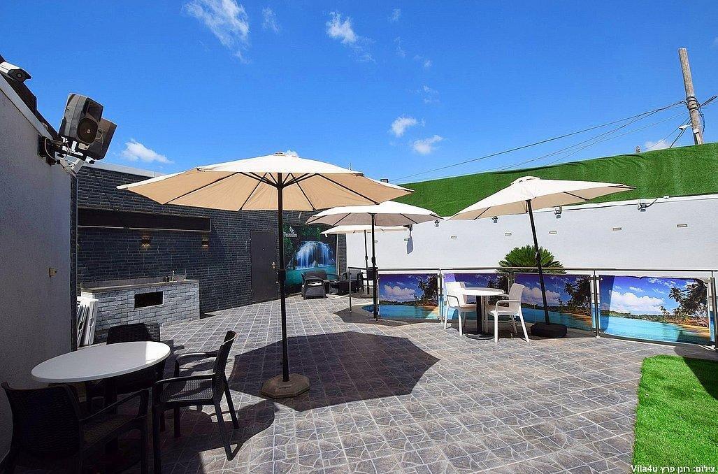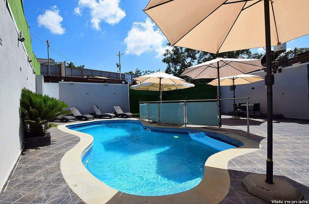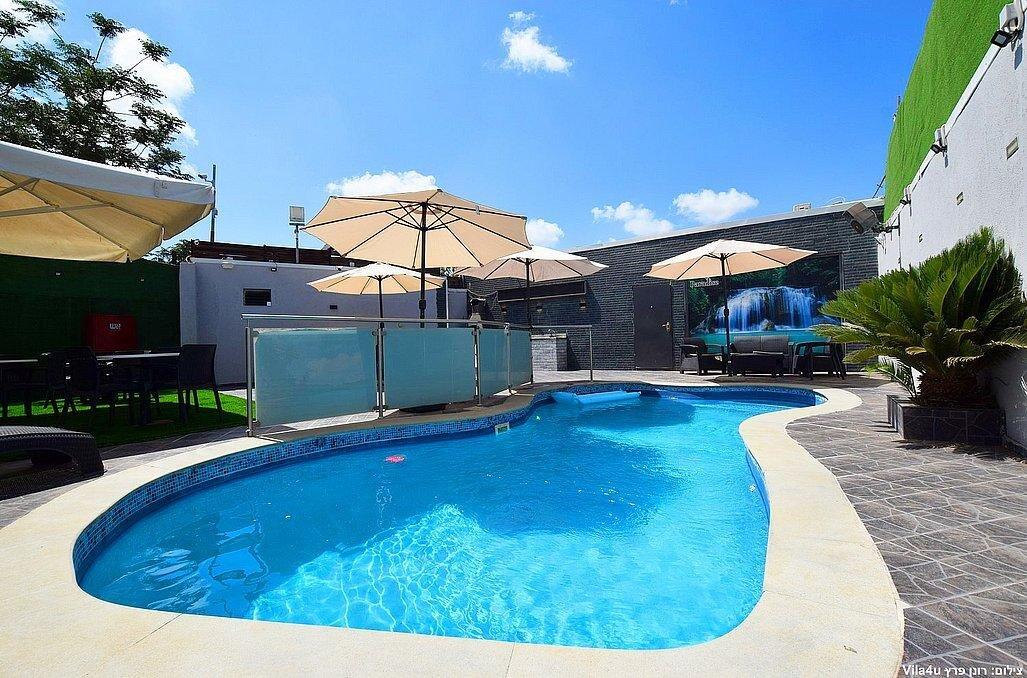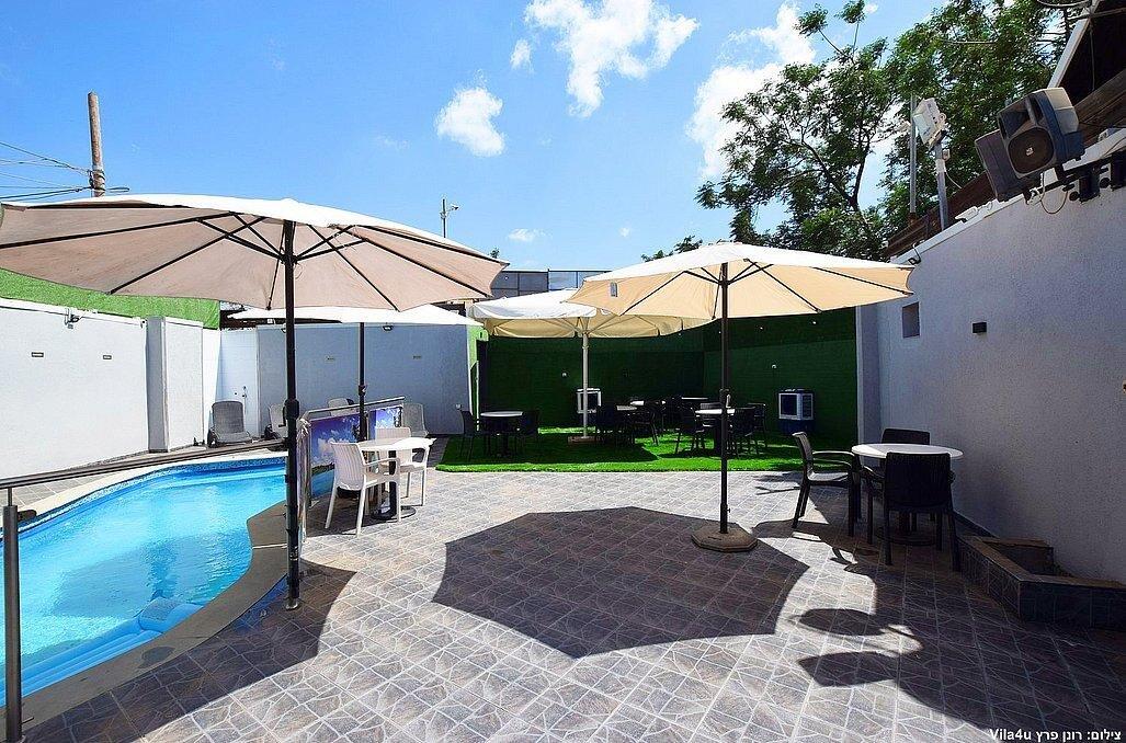 מתחם חיצוני עם בריכה, מנגל ופינות ישיבה