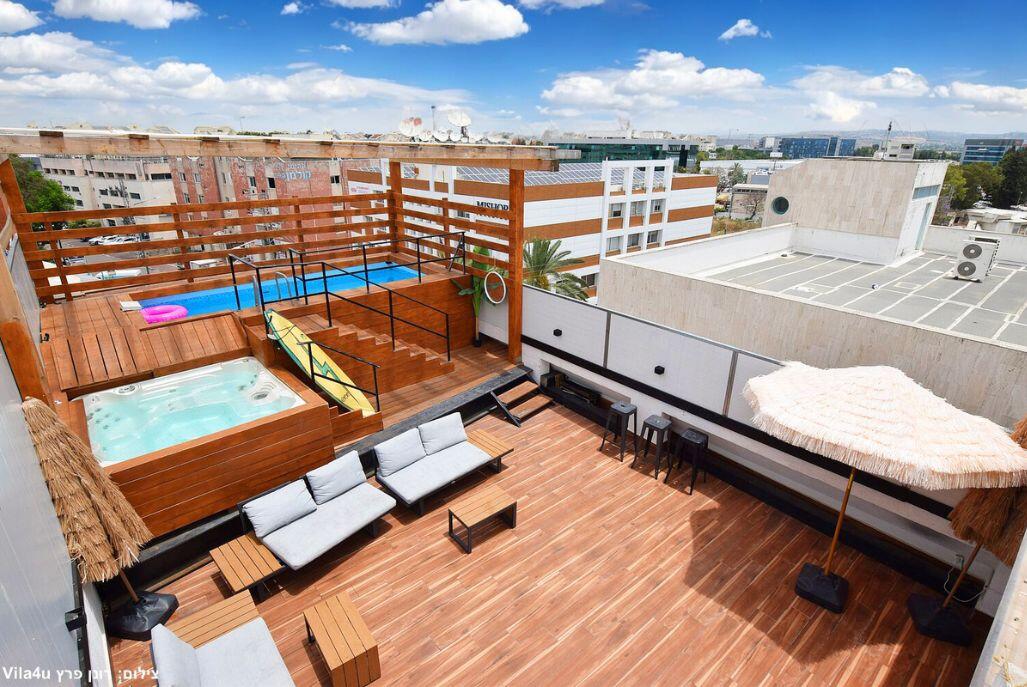 המתחם כולל מתחם חוץ על הגג עם בריכה (שכשוכית), ג'קוזי ספא, מערכת שמע משוכללת, מדשאות ומתחם פנימי עם שולחן סנוקר, ערכת קריוקי, מערכת ישיבה, מטבח מאובזר ועוד.